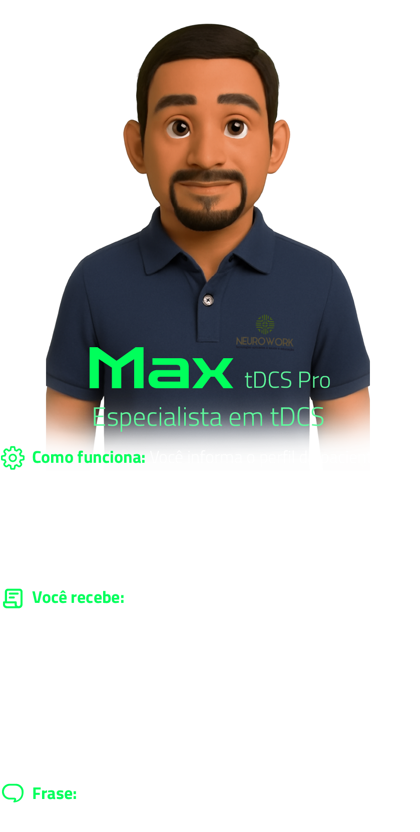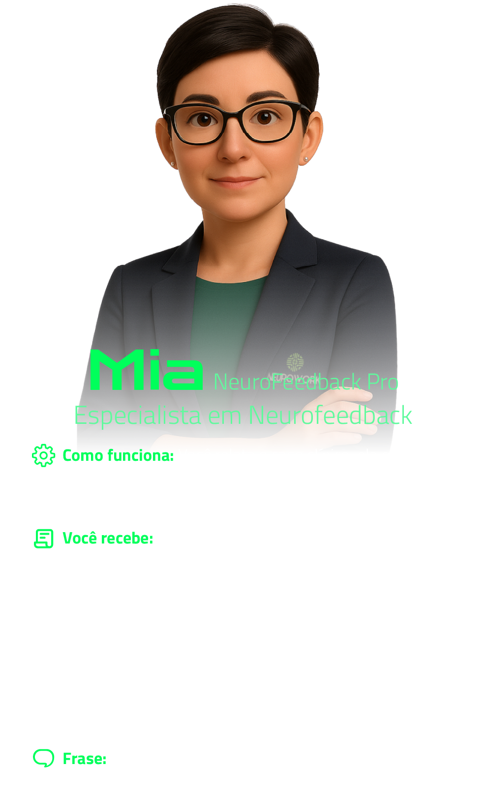 Apresentamos Mia (Neurofeedback) e Max (tDCS) — os novos Assistentes Premium da NeuroIA Lab.Eles chegaram para entregar protocolos prontos, rápidos e fundamentados em ciência, deixando sua prática muito mais eficiente e segura.